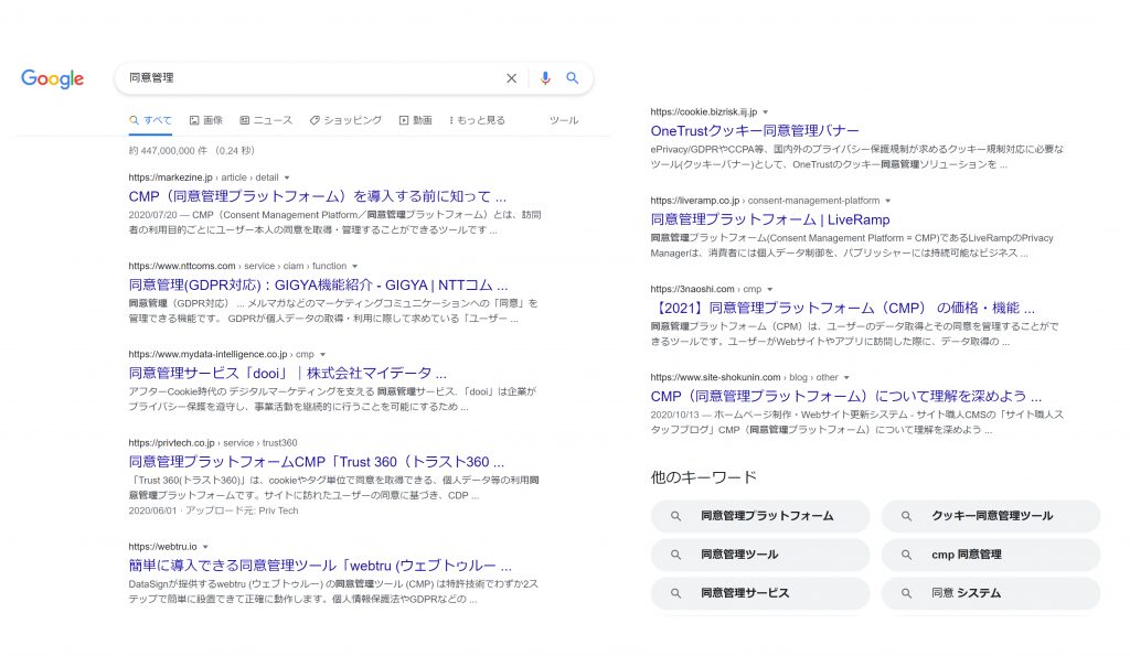 “同意管理”で検索したら検索結果がCMPで埋まっていた件!です(笑)