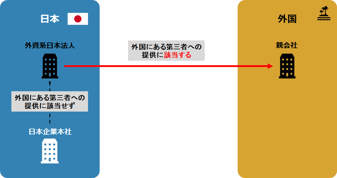 日本企業が、外国の法人格を取得している当該企業の現地子会社に個人データを提供する場合には、当該日本企業にとって「外国にある第三者」への個人データの提供に該当しますが、現地の事業所、支店など同一法人格内での個人データの移動の場合には「外国にある第三者」への個人データの提供には該当しません