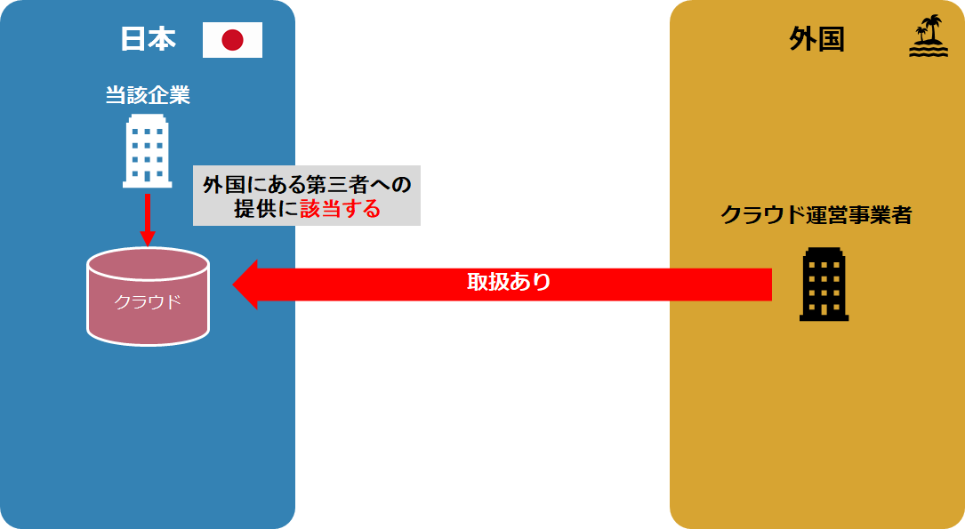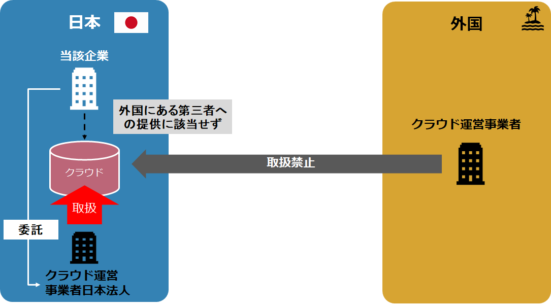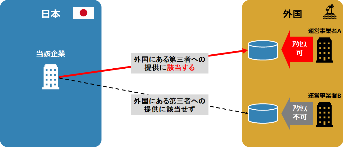ちょっと複雑そうに見えますが、当該事業者が個人データにアクセスして取り扱うことができるか、できる場合に、その個人情報が国内のサーバにあるのか、外国のサーバにあるのか、で、「外国にある第三者への提供」に該当するのか、が決まってくる、と理解しておけば良いでしょう。