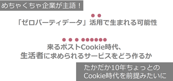 個人的には、ゼロパーティデータ自体はバズワードではないけれど、【ポストクッキー時代の】とくっつくとバズワード感が増すな、と感じています。