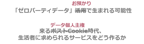 – ポストクッキー時代のゼロパーティデータ活用、といってしまうと、3rd パーティクッキーの代替案としてゼロパーティデータを捉えているように聞こえること